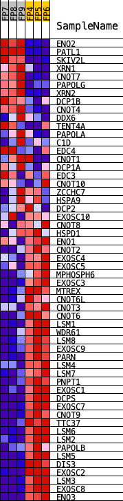 | 45 | EXOSC7 | Exosc7 | 13699 | -1.069 | -0.3357 | Yes | ||