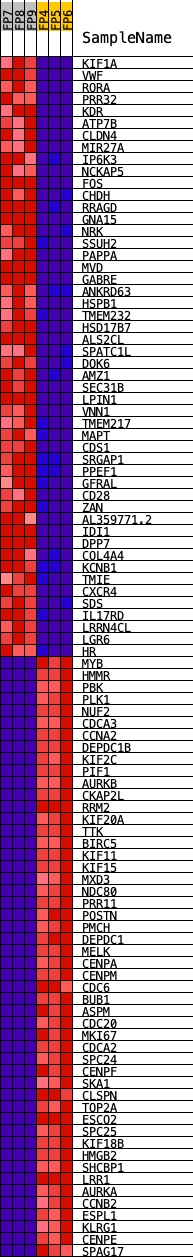 Heat Map of the top 50 features for each phenotype in preliminary.phenotype.cls#NG_versus_LG