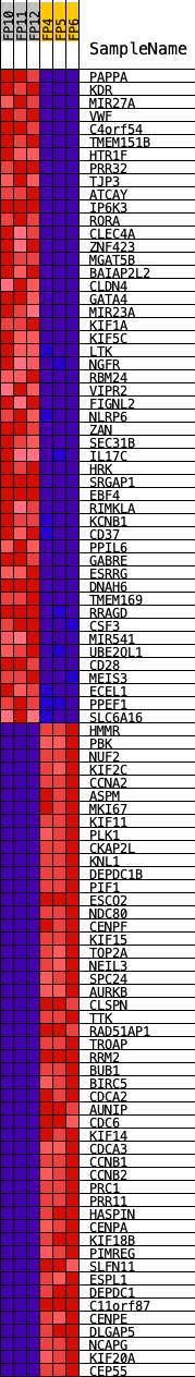 Heat Map of the top 50 features for each phenotype in preliminary.phenotype.cls#NGP_versus_LG