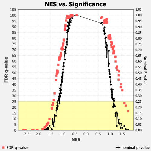 - 2 gene sets are significantly enriched at nominal pvalue < 1%