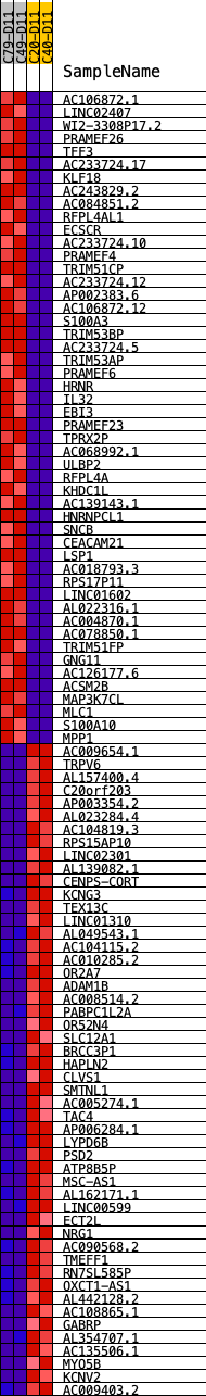 Heat Map of the top 50 features for each phenotype in Placode.placode.phenotype.cls#KOD11_versus_WTD11