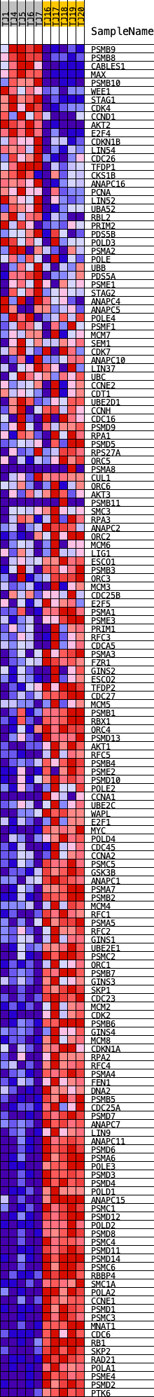 | 35 | MCM7 | ENSG00000166508.17 | 20623 | 0.016 | -0.3082 | No | ||