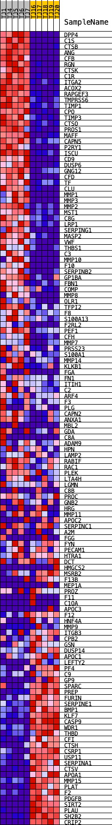 | 84 | SERPINC1 | ENSG00000117601.13 | 21552 | -0.034 | 0.1478 | No | ||
