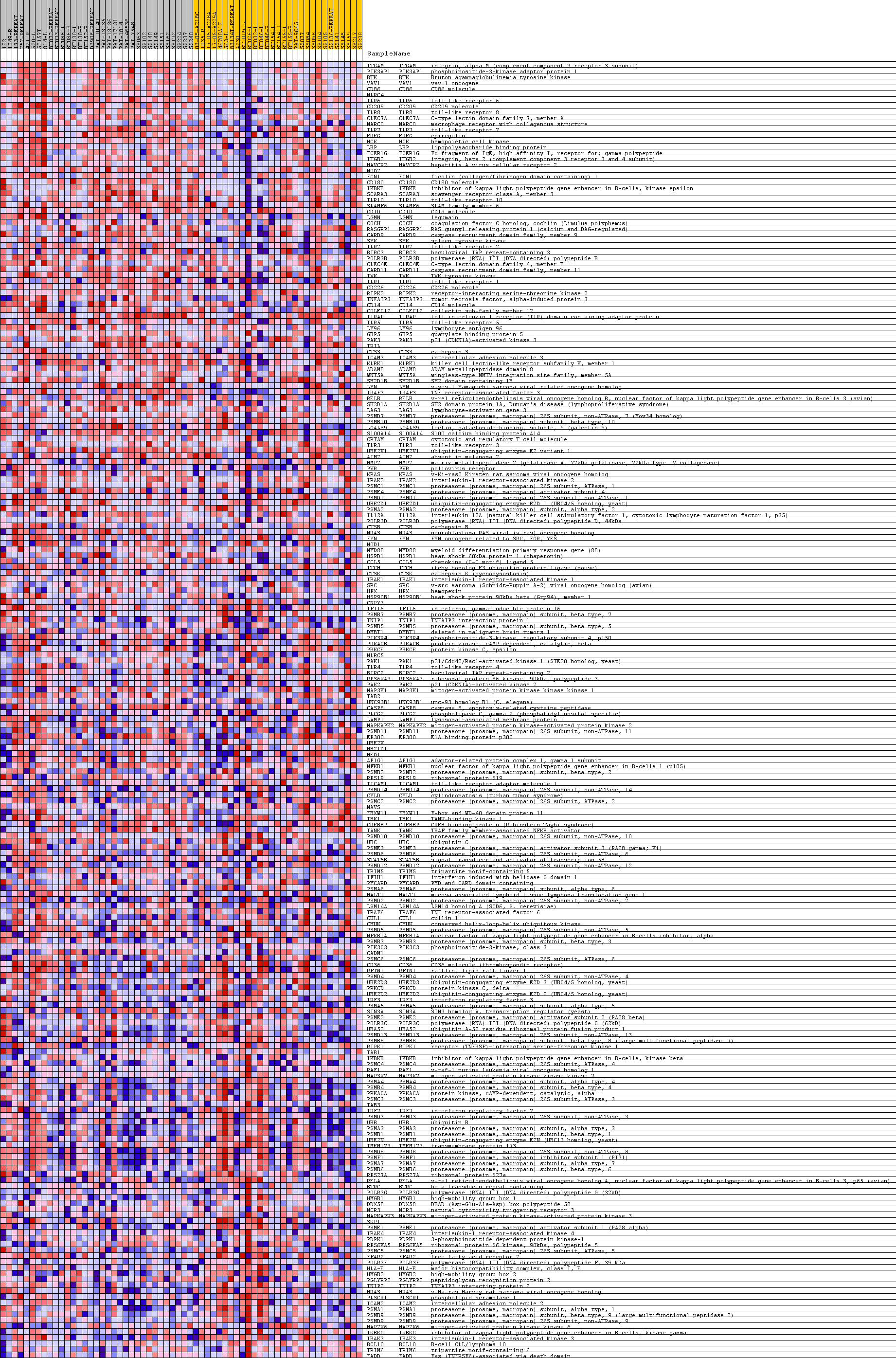 | 56 | LYN | LYN Entrez,  Source | v-yes-1 Yamaguchi sarcoma viral related oncogene homolog | 4186 | 0.120 | 0.4889 | Yes |