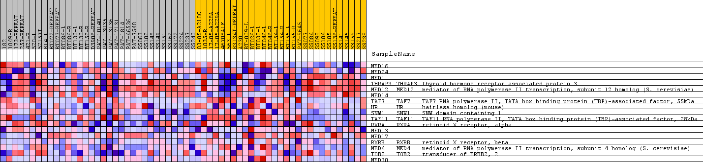 | 14 | RXRB | RXRB Entrez,  Source | retinoid X receptor, beta | 16875 | -0.036 | -0.2324 | Yes |