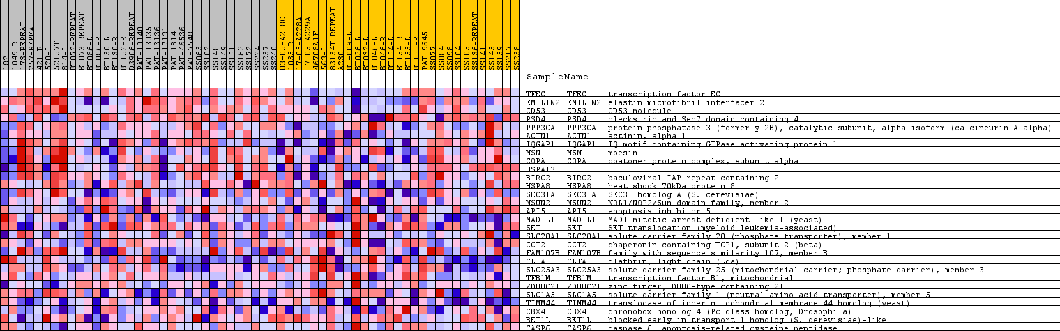 | 6 | ACTN1 | ACTN1 Entrez,  Source | actinin, alpha 1 | 9122 | 0.036 | 0.2553 | No |