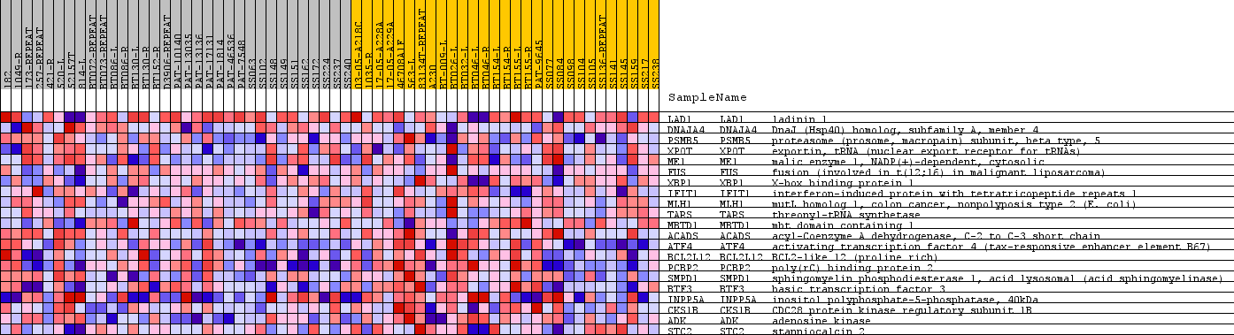 | 17 | BTF3 | BTF3 Entrez,  Source | basic transcription factor 3 | 17459 | -0.043 | -0.2557 | Yes |