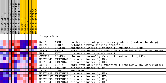 | 12 | HIST1H3E | HIST1H3E Entrez,  Source | histone cluster 1, H3e | 17595 | -0.663 | -0.5584 | Yes |