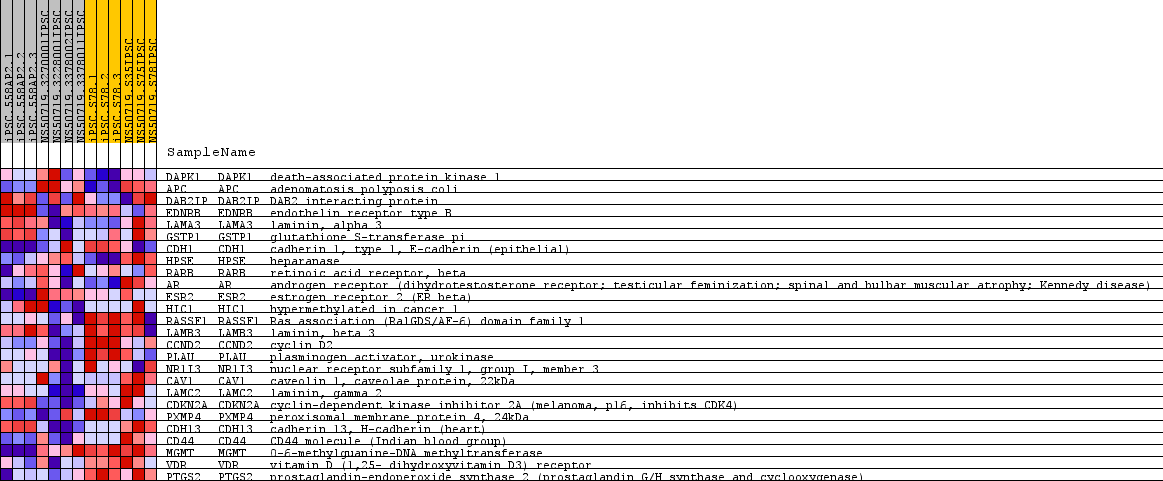 | 12 | HIC1 | HIC1 Entrez,  Source | hypermethylated in cancer 1 | 14324 | -0.133 | -0.6836 | Yes |