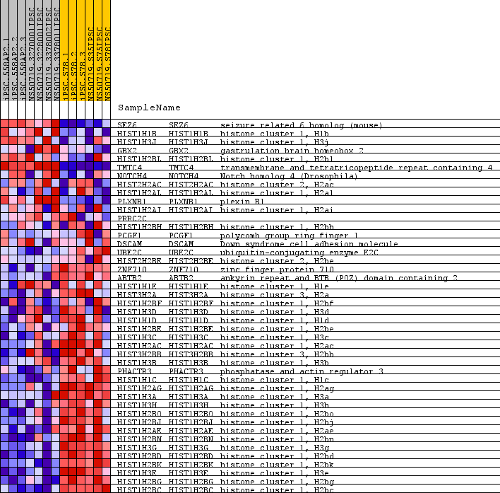 | 33 | HIST1H3A | HIST1H3A Entrez,  Source | histone cluster 1, H3a | 19137 | -0.996 | -0.5204 | Yes |