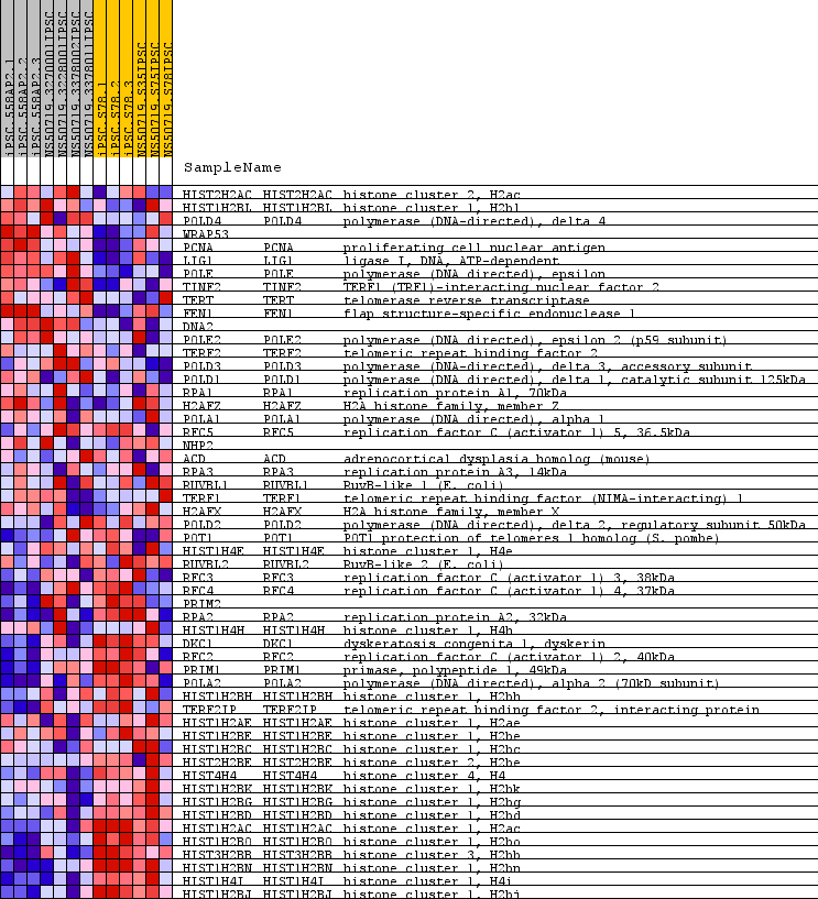 | 38 | POLA2 | POLA2 Entrez,  Source | polymerase (DNA directed), alpha 2 (70kD subunit) | 13504 | -0.093 | -0.5387 | No |