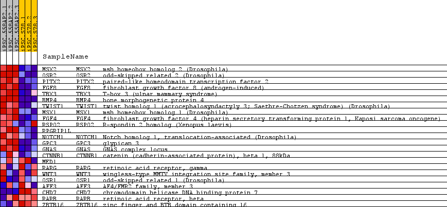 | 8 | MSX1 | MSX1 Entrez,  Source | msh homeobox homolog 1 (Drosophila) | 1017 | 1.192 | 0.7903 | Yes |