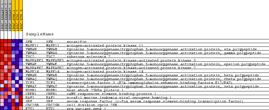 | 1 | SFN | SFN Entrez,  Source | stratifin | 122 | 3.402 | 0.5368 | Yes |