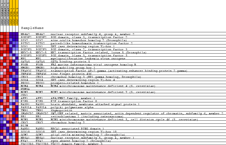 | 5 | SOX1 | SOX1 Entrez,  Source | SRY (sex determining region Y)-box 1 | 268 | 2.586 | 0.6542 | Yes |