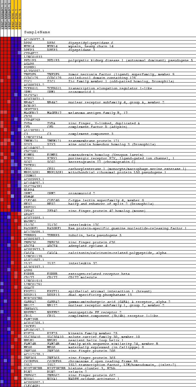 Heat Map of the top 50 features for each phenotype in NS50832_collapsed_to_symbols.NS50832.cls#558AP2_versus_S78