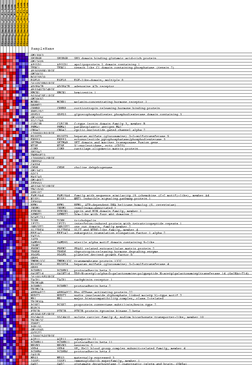 Heat Map of the top 50 features for each phenotype in SMCHD1_KO_collapsed_to_symbols.SMCHD1_KO.cls#del_versus_fl