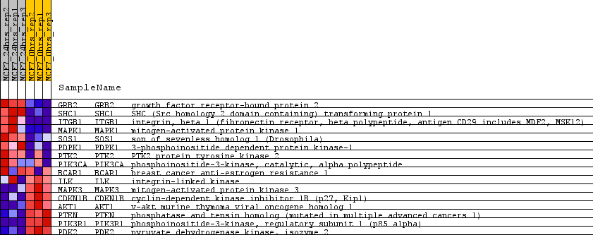 | 15 | PIK3R1 | PIK3R1 Entrez,  Source | phosphoinositide-3-kinase, regulatory subunit 1 (p85 alpha) | 13437 | -3.371 | -0.0749 | Yes |