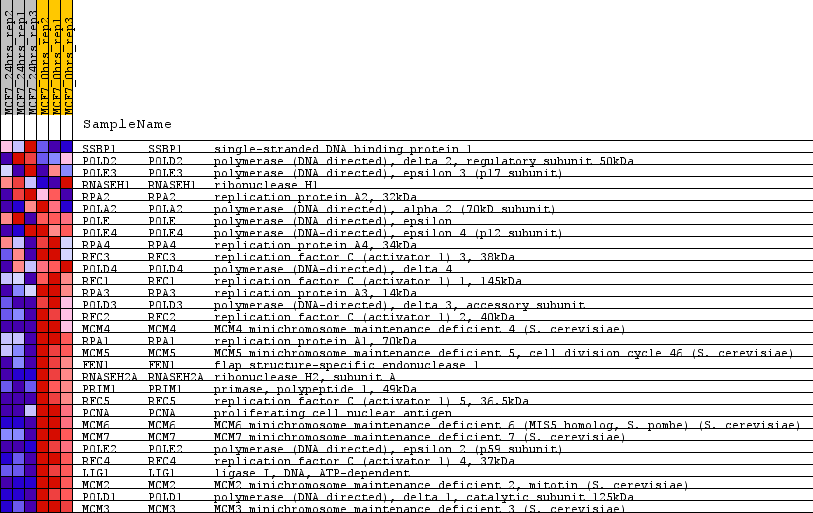 | 17 | RPA1 | RPA1 Entrez,  Source | replication protein A1, 70kDa | 12081 | -1.900 | -0.5635 | Yes |