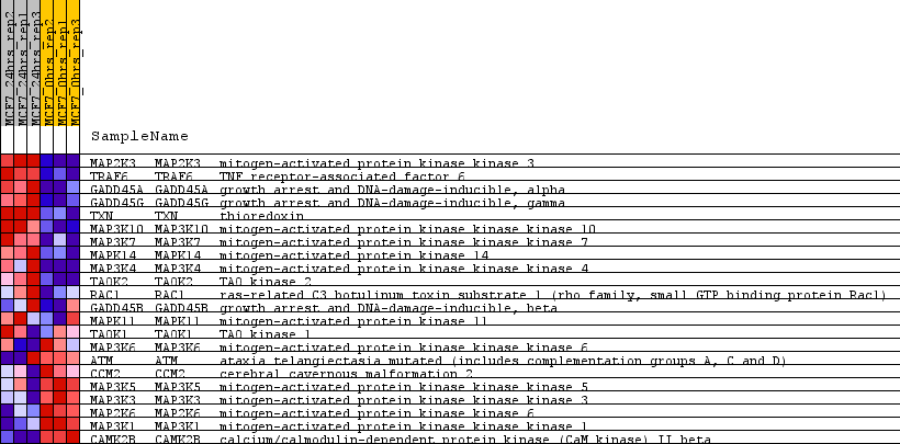 | 1 | MAP2K3 | MAP2K3 Entrez,  Source | mitogen-activated protein kinase kinase 3 | 768 | 3.335 | 0.0349 | Yes |