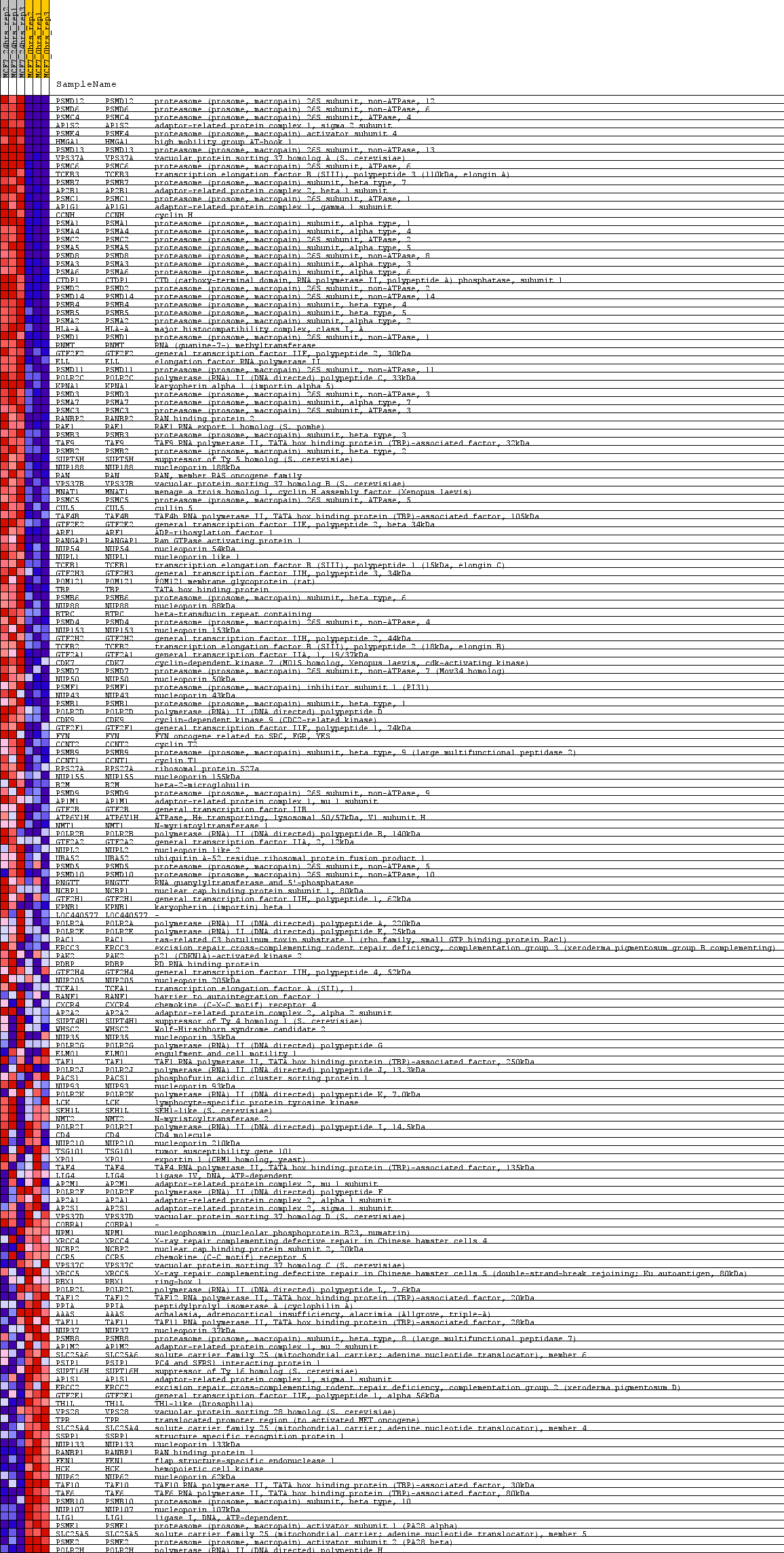 | 127 | POLR2I | POLR2I Entrez,  Source | polymerase (RNA) II (DNA directed) polypeptide I, 14.5kDa | 8242 | -0.108 | 0.2031 | No |