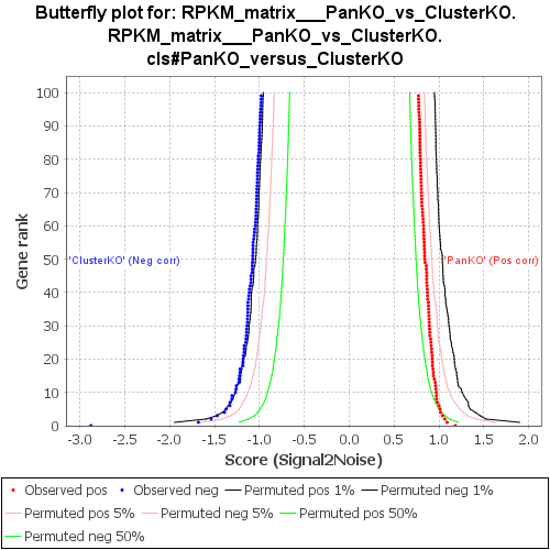 Gene markers for the PanKO versus ClusterKO comparison